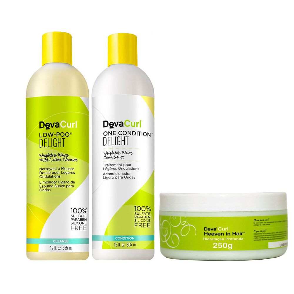 Deva Curl Low Poo Delight Shampoo 355ml, Condicionador 355ml e Máscara Heave 250ml