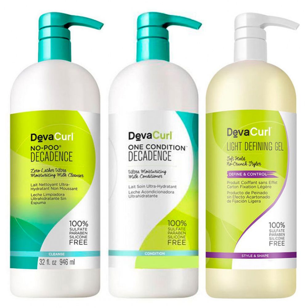 Deva Curl No Poo Decadence Shampoo 1000ml, Condicionador 1000ml e Angéll Gel 1000ml