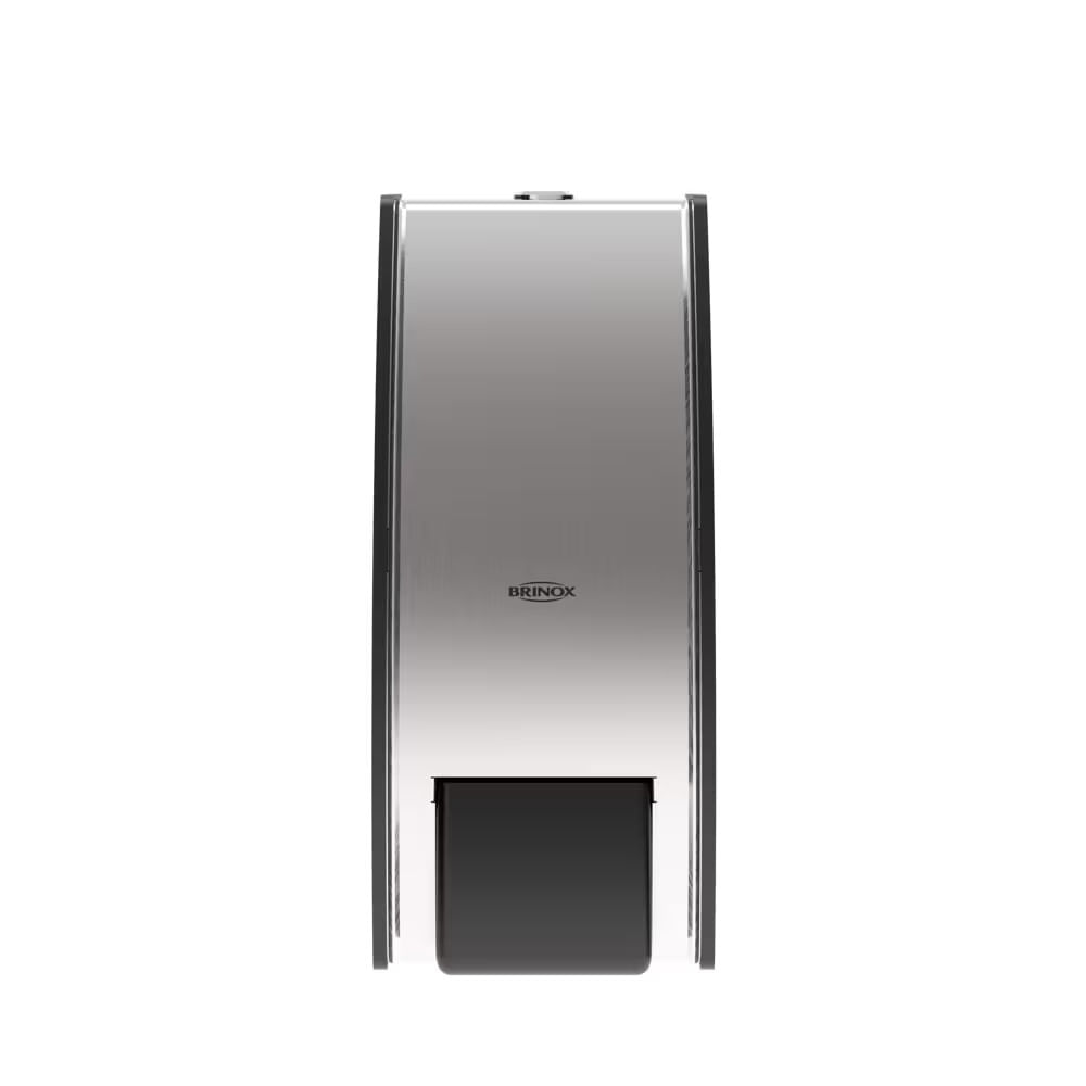 O Dispenser de Parede para Sabonete Álcool Gel Brinox Decorline combina aço inox escovado e polipropileno preto em um design sofisticado.
