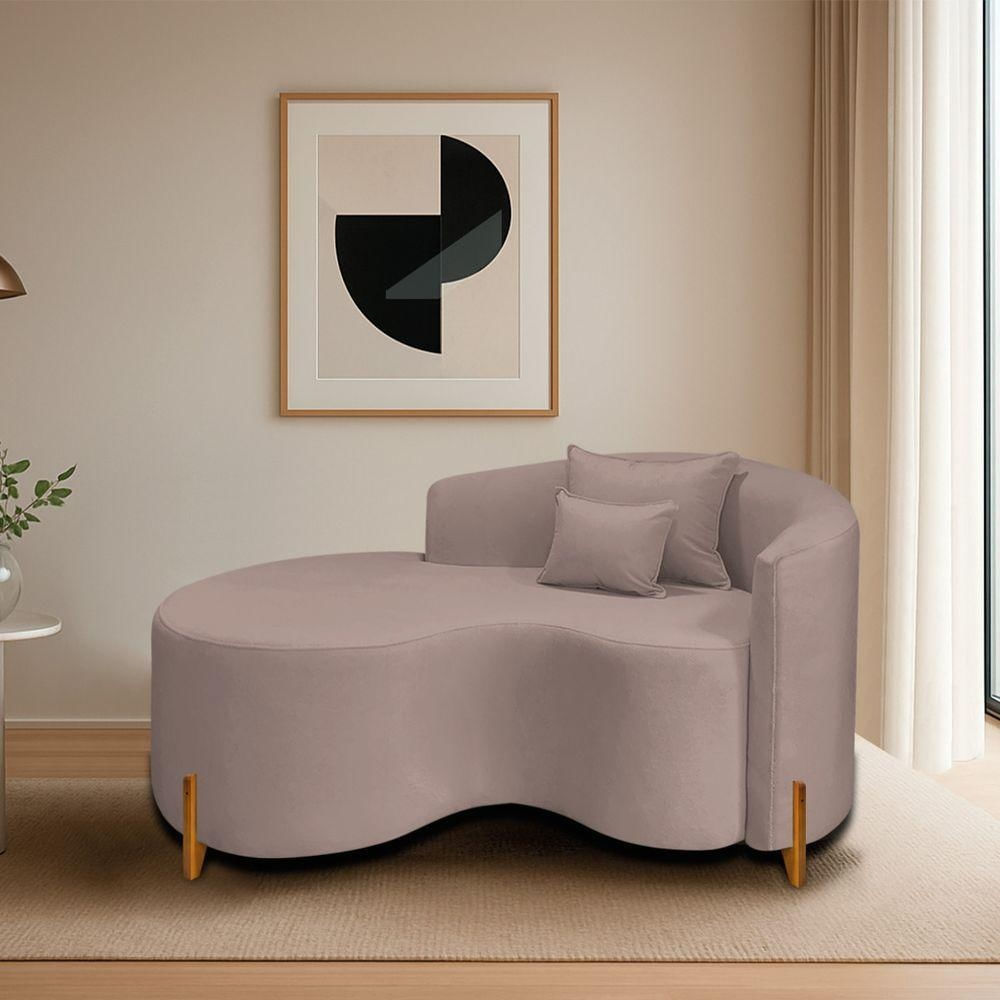 Divã Recamier Curvo Sala De Estar Recepção Inglaterra 150cm Pés Madeira Lado Esquerdo Linho Cor Rosê