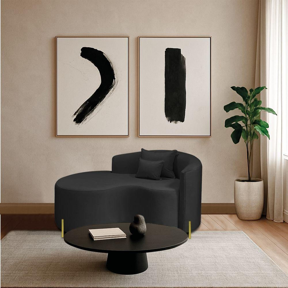 Divã Recamier Curvo Sala De Estar Recepção Inglaterra 150cm Pés Metal Dourado Lado Esquerdo Bouclé Preto