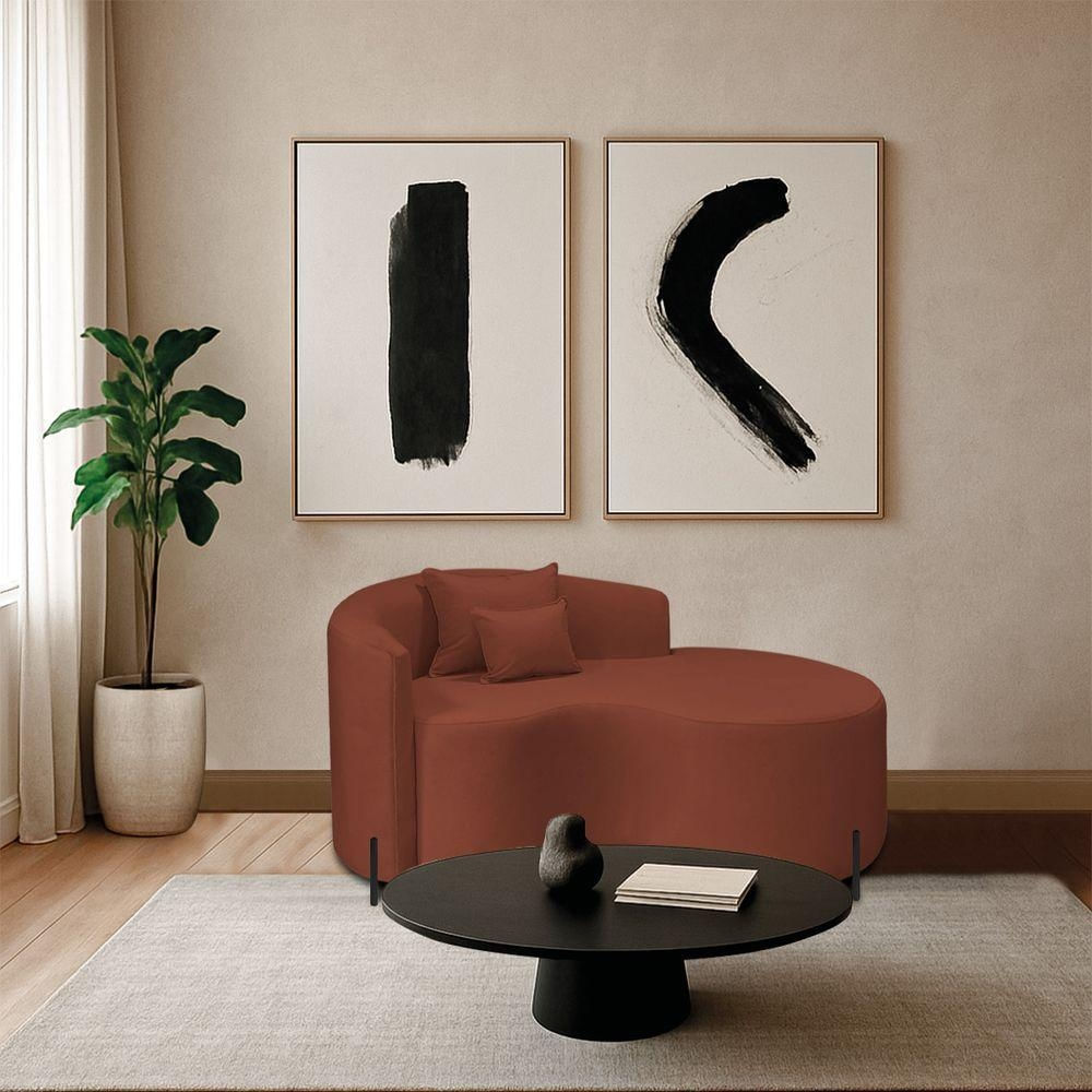Divã Recamier Curvo Sala De Estar Recepção Inglaterra 150cm Pés Metal Preto Lado Direito Bouclé Terracota