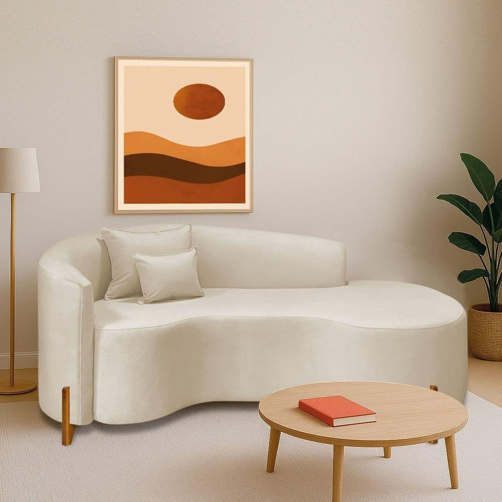 Divã Recamier Curvo Sala De Estar Recepção Inglaterra 180cm Pés Madeira Lado Direito Bouclé Bege