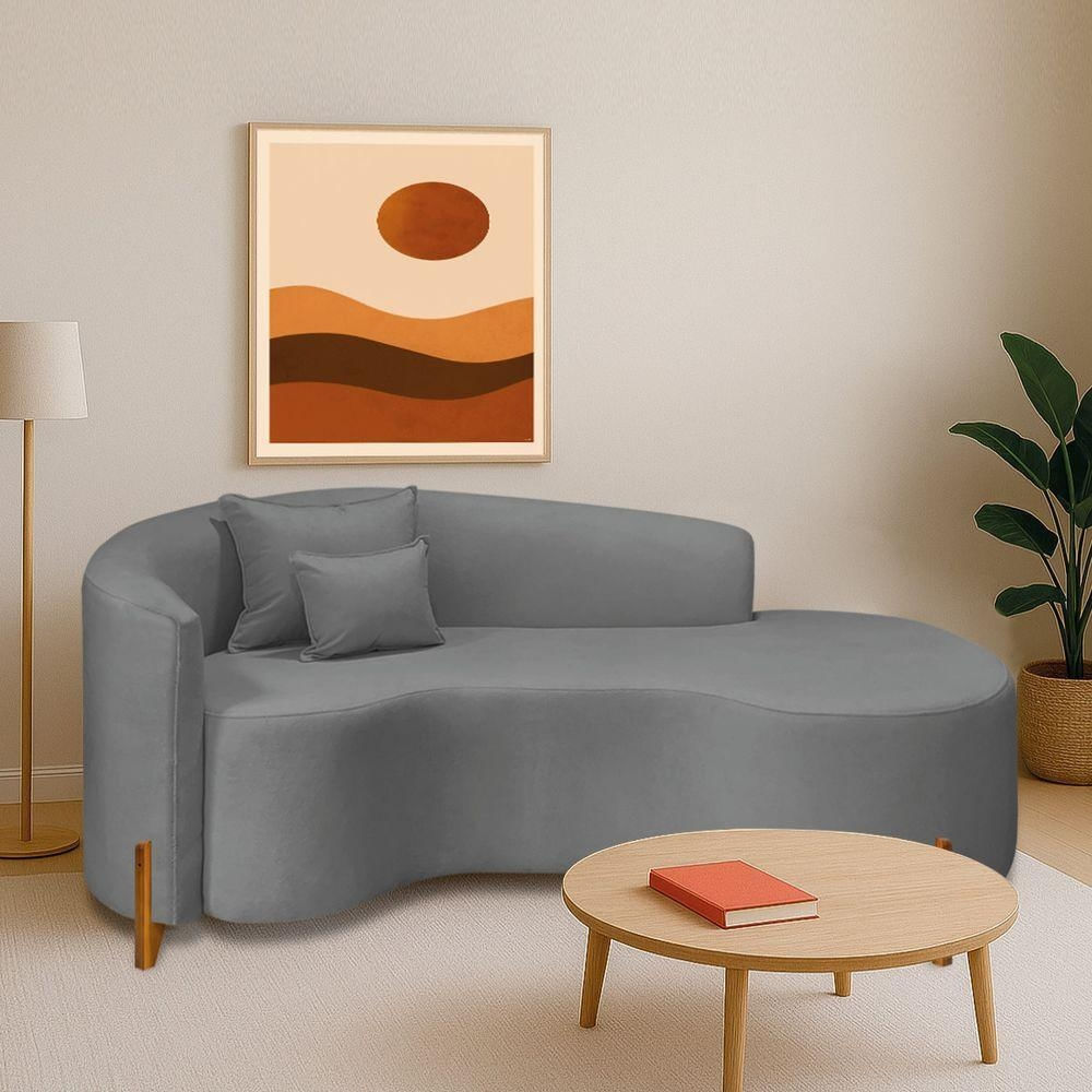 Divã Recamier Curvo Sala De Estar Recepção Inglaterra 180cm Pés Madeira Lado Direito Bouclé Cinza