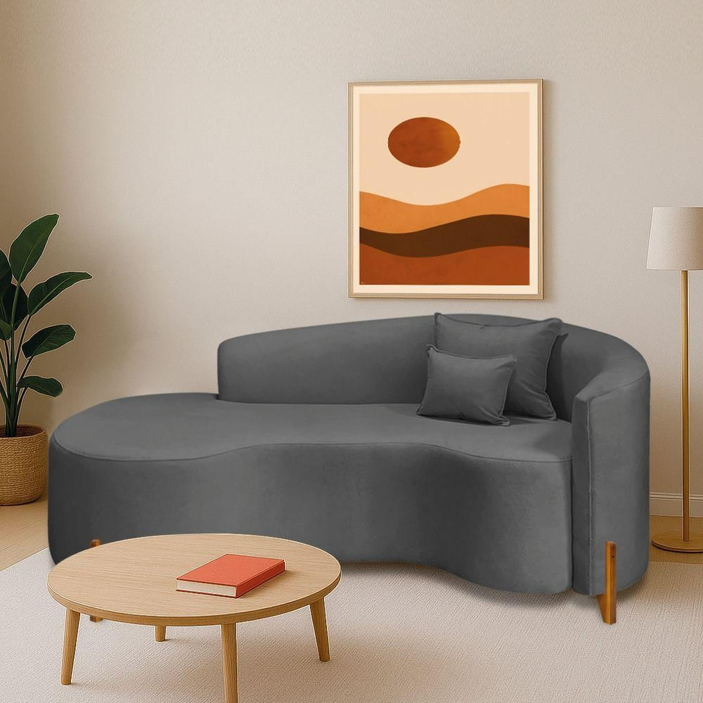 Divã Recamier Curvo Sala De Estar Recepção Inglaterra 180cm Pés Madeira Lado Esquerdo Linho Cinza Escuro
