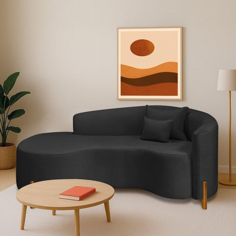 Divã Recamier Curvo Sala De Estar Recepção Inglaterra 200cm Pés Madeira Lado Esquerdo Bouclé Preto