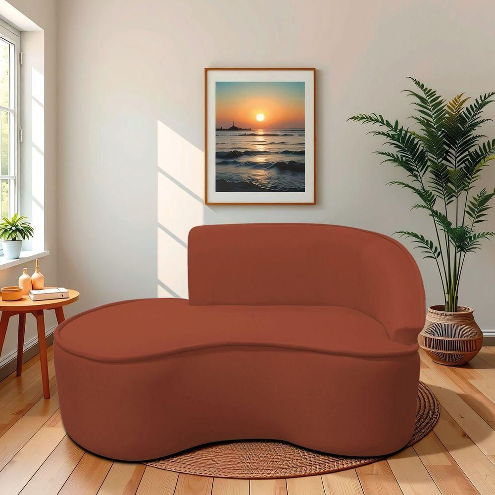 Divã Recamier Curvo Sala De Estar Recepção Marrocos 150cm Lado Esquerdo Bouclé Terracota