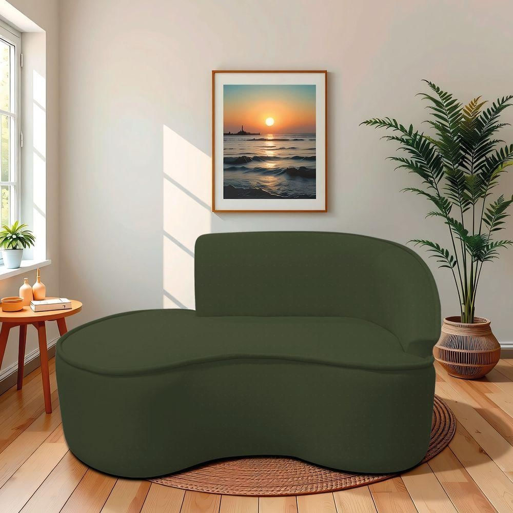 Divã Recamier Curvo Sala De Estar Recepção Marrocos 150cm Lado Esquerdo Linho Verde