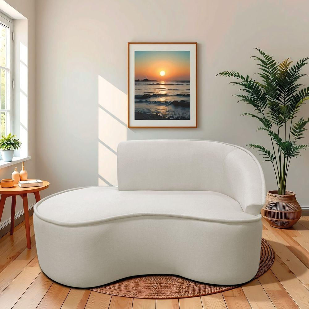 Divã Recamier Curvo Sala De Estar Recepção Marrocos 160cm Lado Esquerdo Linho Bege
