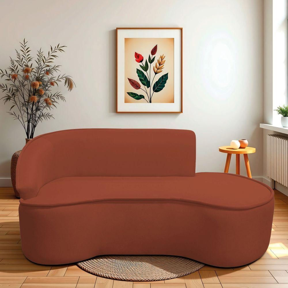 Divã Recamier Curvo Sala De Estar Recepção Marrocos 180cm Lado Direito Bouclé Terracota