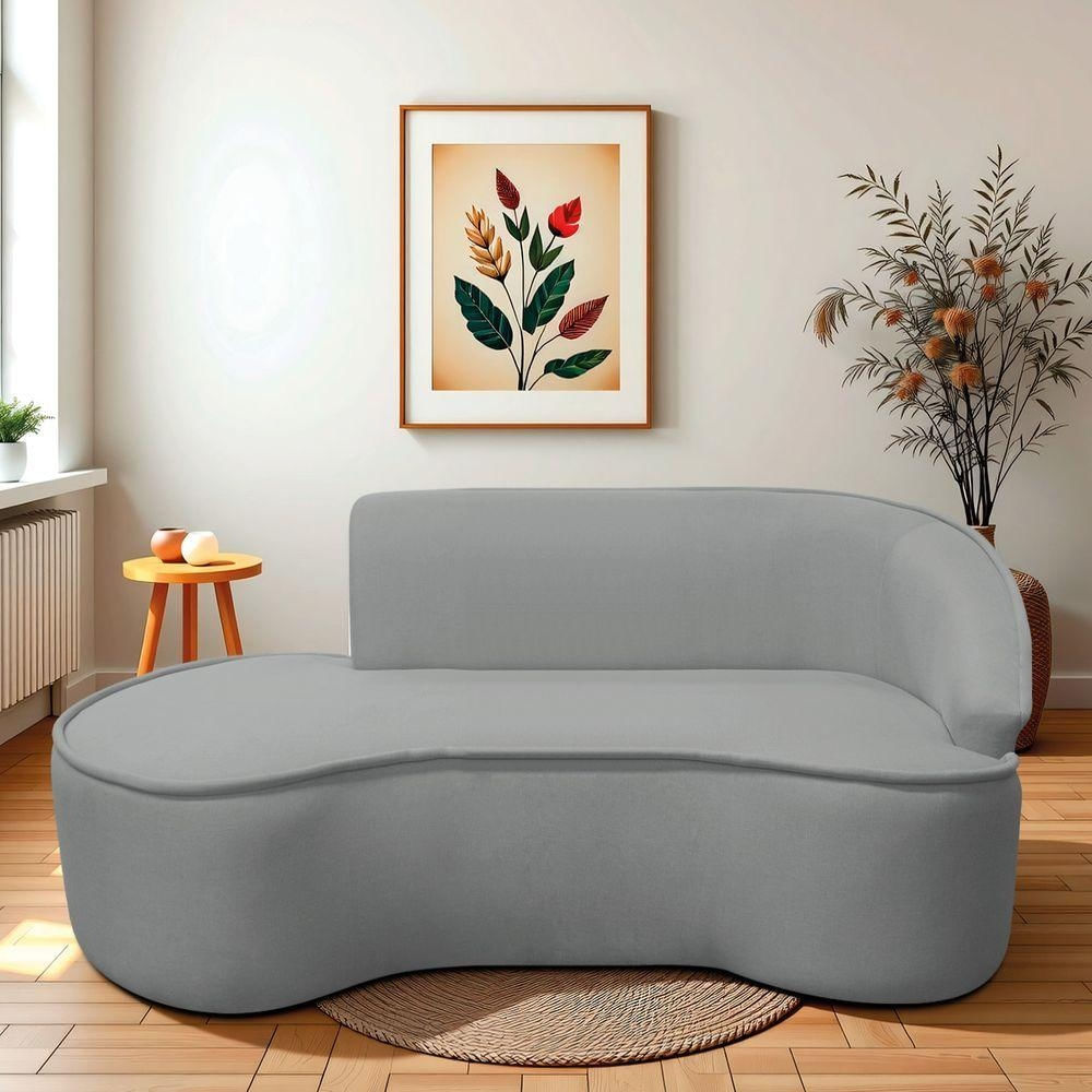 Divã Recamier Curvo Sala De Estar Recepção Marrocos 180cm Lado Esquerdo Bouclé Cinza