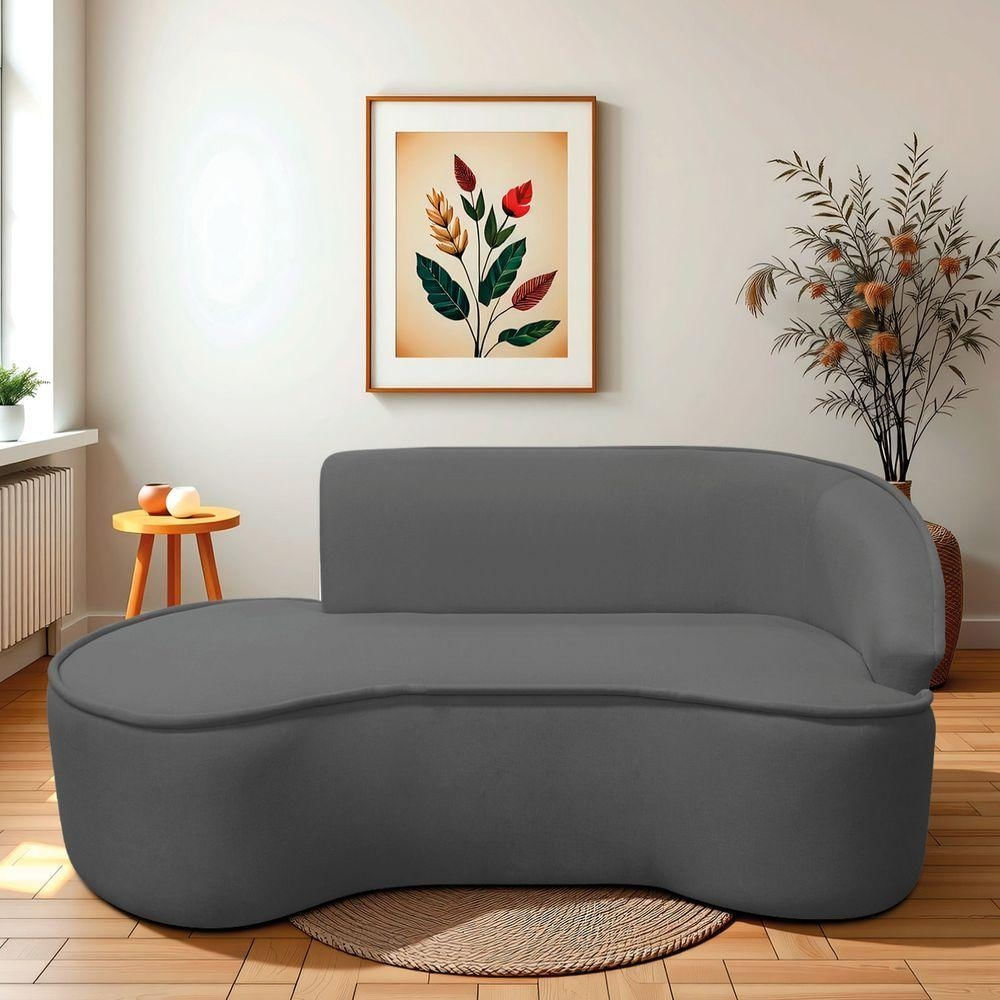 Divã Recamier Curvo Sala De Estar Recepção Marrocos 180cm Lado Esquerdo Linho Cinza Escuro