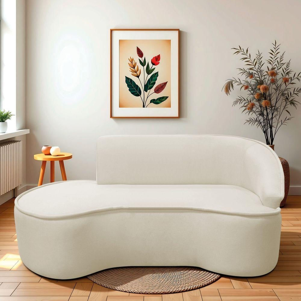 Divã Recamier Curvo Sala De Estar Recepção Marrocos 200cm Lado Esquerdo Bouclé Bege