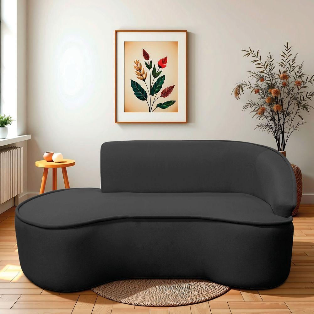 Divã Recamier Curvo Sala De Estar Recepção Marrocos 200cm Lado Esquerdo Linho Preto