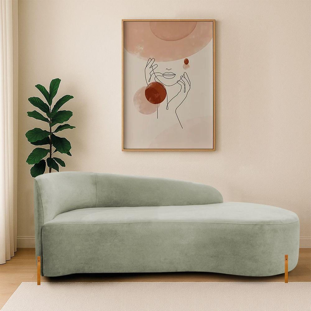 Divã Recamier Orgânico França 140cm Lado Dir Pés De Madeira Bouclé Verde Oliva