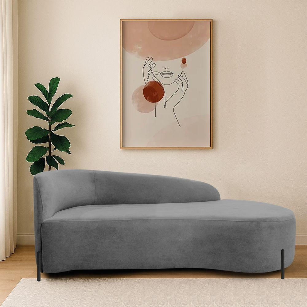 Divã Recamier Orgânico França 140cm Lado Dir Pés Metal Preto Bouclé Cinza