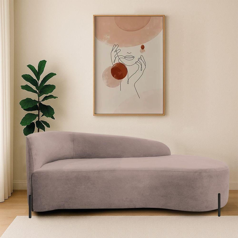 Divã Recamier Orgânico França 140cm Lado Dir Pés Metal Preto Linho Rosê
