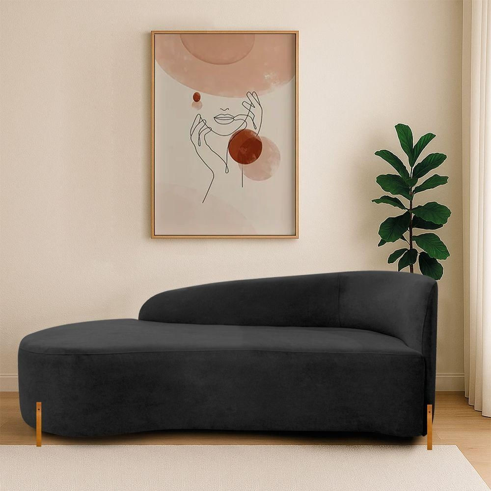 Divã Recamier Orgânico França 140cm Lado Esq Pés Madeira Linho Preto