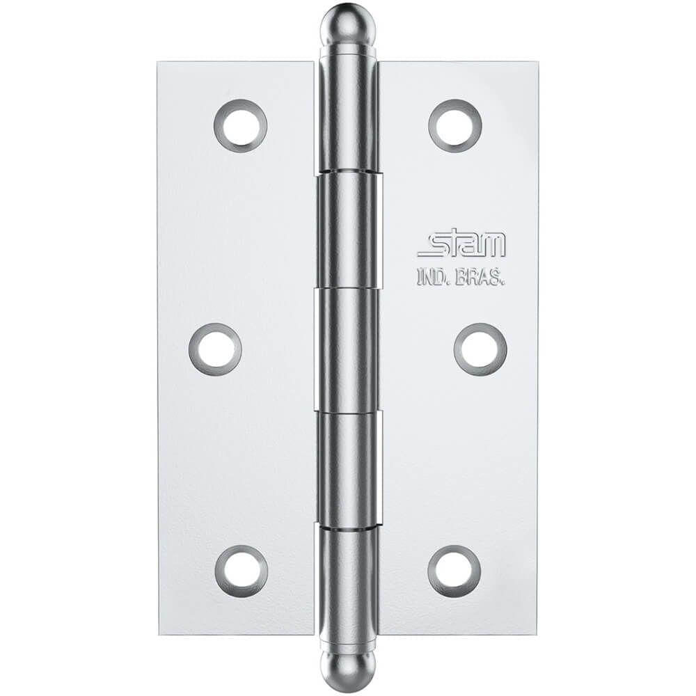 Dobradiça Pino E Bola 3.1-2" X 2.5-16" X 1,7mm Cromado Sem Anel E Com Canto Reto - 42030 - Stam