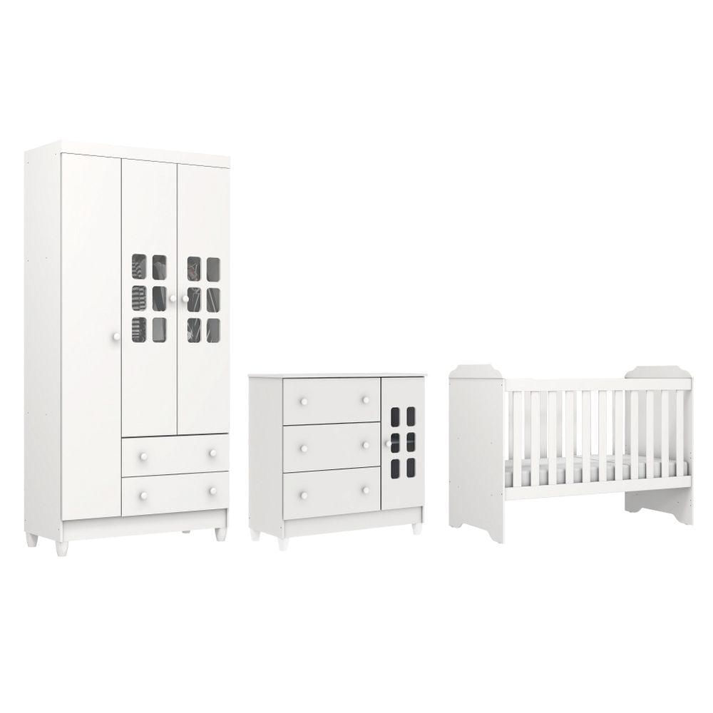 Dormitório Infantil Completo Carolina Baby Berço Americano Mini Cama 3 Em 1 Luna Branco Branco