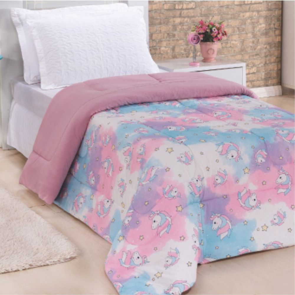 - Edredom Capricórnio Solteiro Dupla Face Malha Rosa