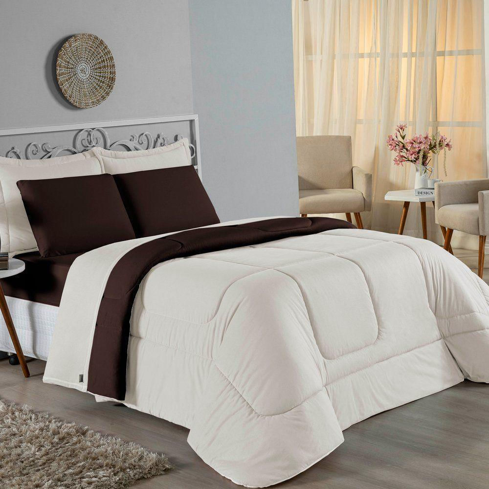 Edredom Casal Nobre 1 Peça Dupla Face 2,00m X 2,20m Malha 100% Algodão - Palha / Marrom