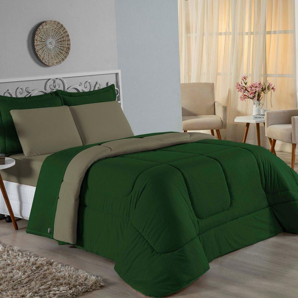 Edredom Casal Nobre 1 Peça Dupla Face 2,00m X 2,20m Malha 100% Algodão - Verde-bandeira / Avelã