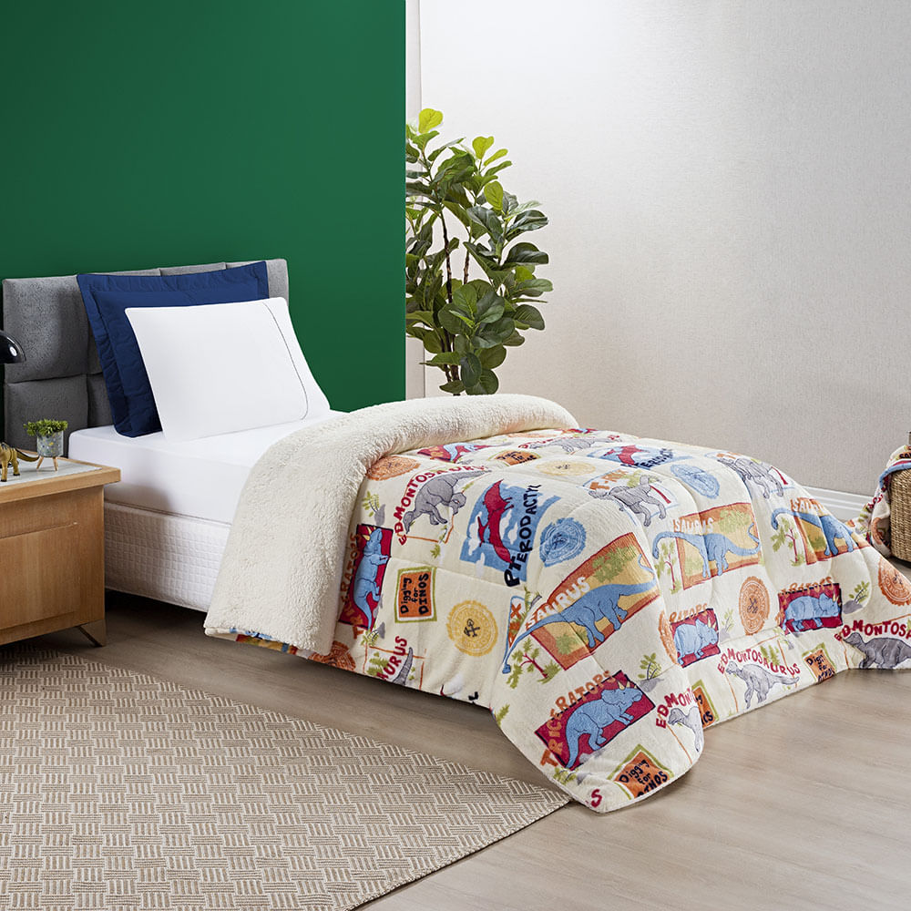 - Edredom Coberdrom Diverkids Solteiro Sherpa Toque Lã Carneiro - Dino