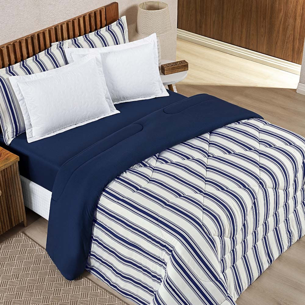 - Edredom Coberdrom Estilo Queen Malha 100% Algodão - Marinho