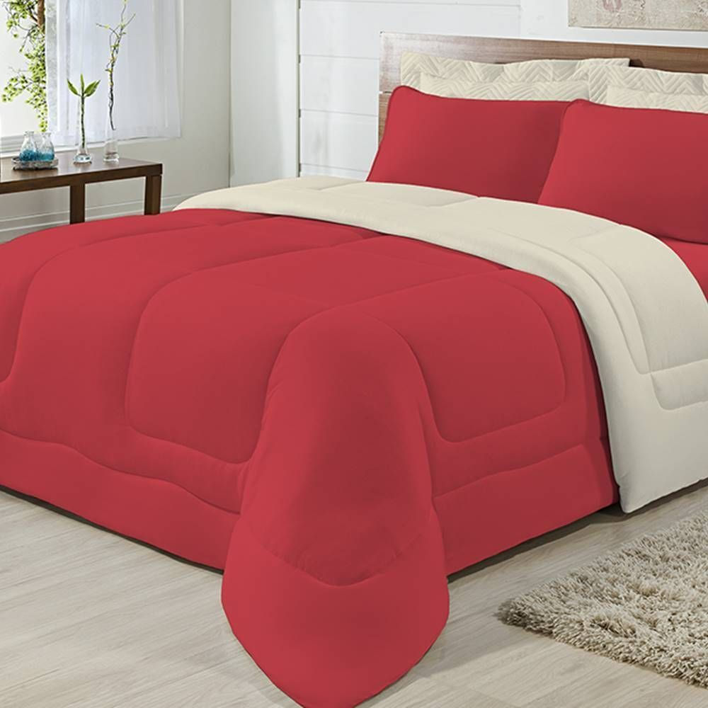 Edredom Dupla Face 100% Algodão Malha Queen Gran Moratta 01 Peça - Palha/ Vermelho