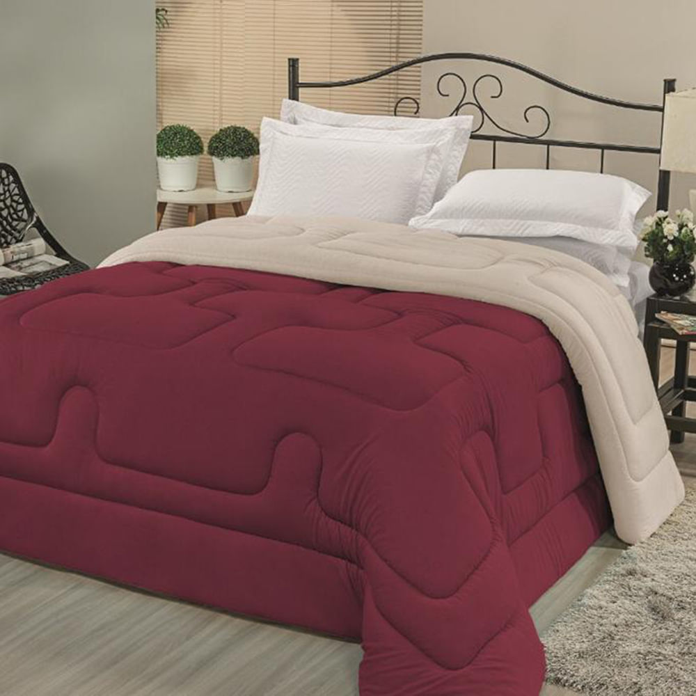 Edredom em Malha 100% Algodão Queen Dupla Face - Vinho - Bege