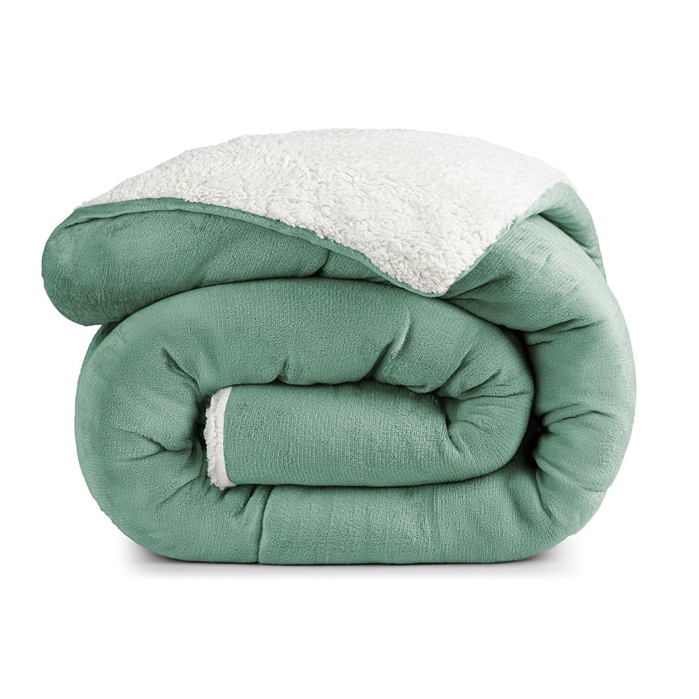 Edredom Esquimó Solteiro Dupla Face Sherpa Toque Lã Carneiro - Alecrim - 100% Poliéster