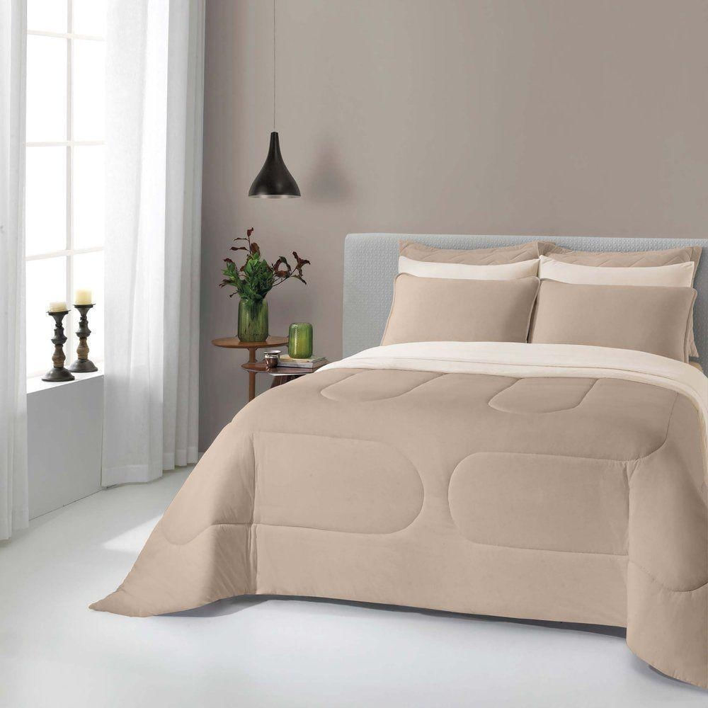 Edredom Liverpool Casal Padrão 1 Peça Dupla Face Tecido Malha Fio 30/1 Penteado 100% Algodão - Bege/marfim