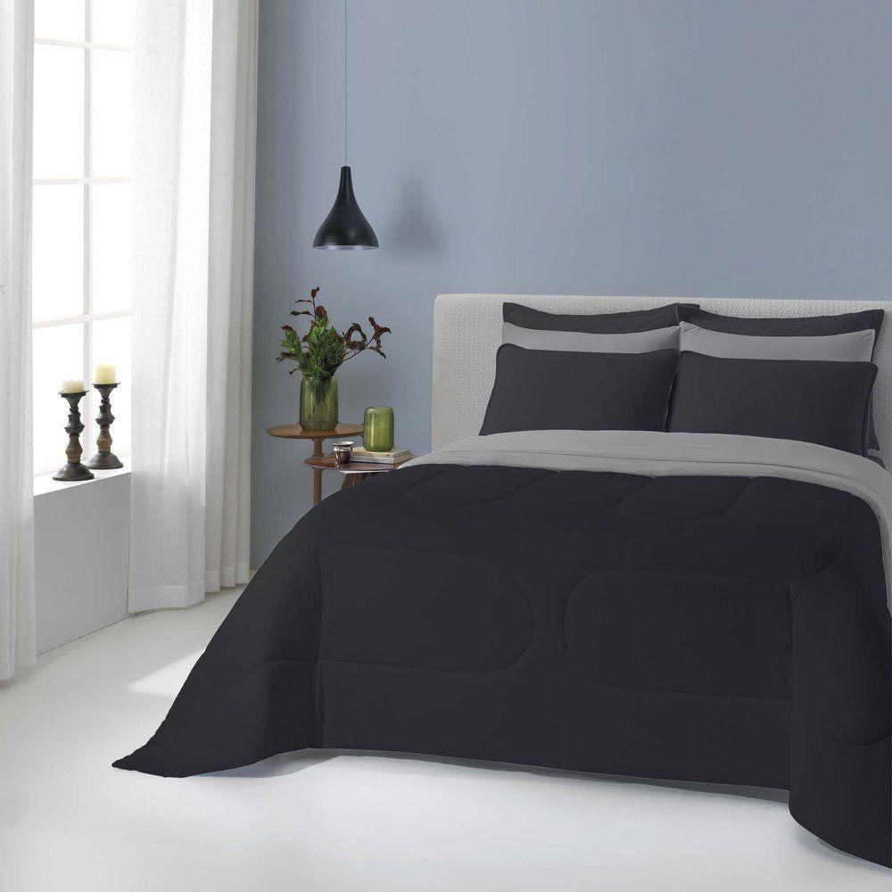 Edredom Liverpool Solteiro 1 Peça Dupla Face Tecido Malha Fio 30/1 Penteado 100% Algodão - Preto/cinza