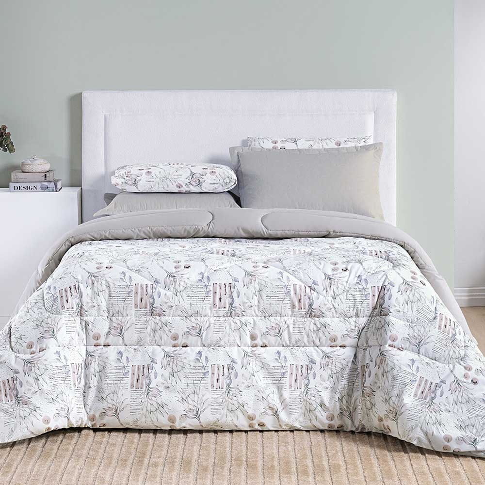 Edredom Maggy Dupla Face Queen 1 Peça Percale 200 Fios Estampado - Protea Cinza Floral