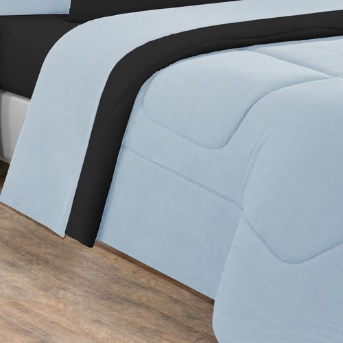Edredom Malha 100% Algodão Gran Moratta 1 Peça King - Azul Bebê/Preto