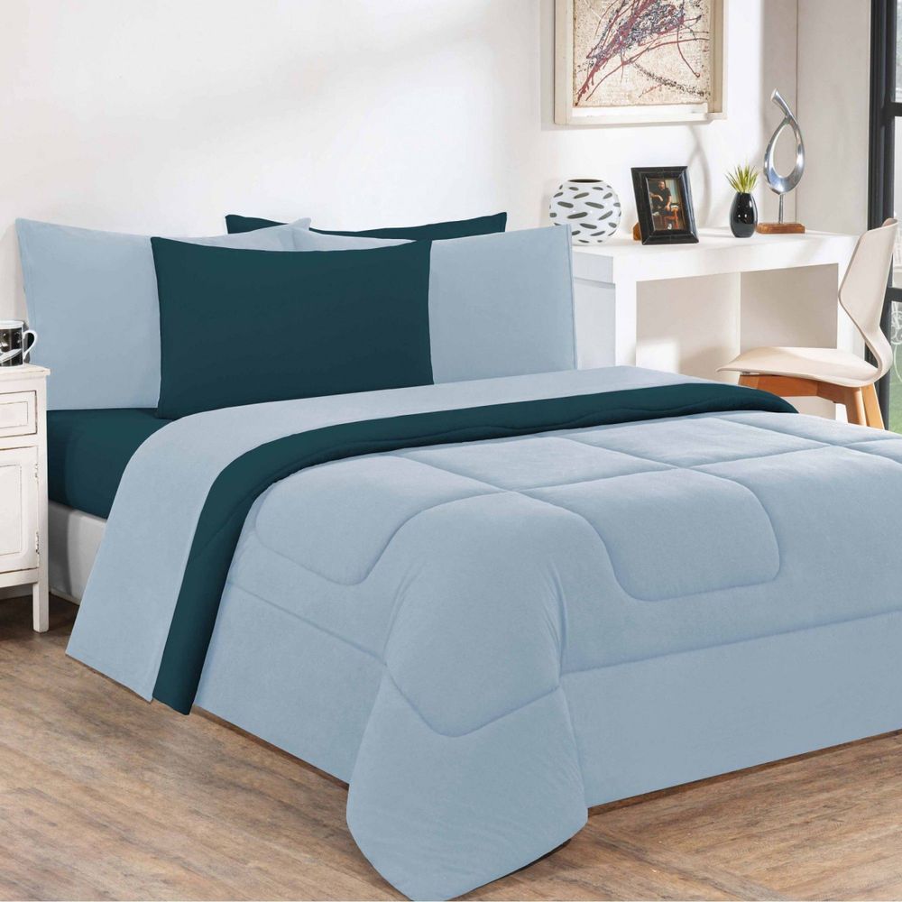 Edredom Malha 100% Algodão Gran Moratta 1 Peça Solteiro - Azul Bebê/Azul Petróleo
