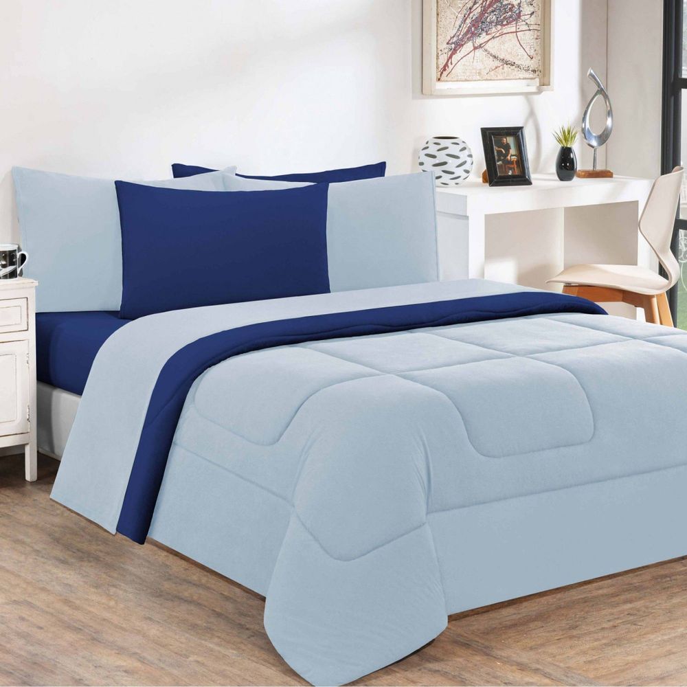 Kit Edredom Dupla Face + Jogo De Lençol Solteiro Nobre 4 Peças Malha 100% Algodão - Turquesa / RoyalR$ 375,8410 x de R$ 37,58 s/juros no cartão Le Biscuit
