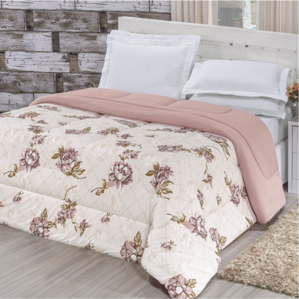 - Edredom Quality Queen Malha 100% Algodão Dupla Face - Rosê