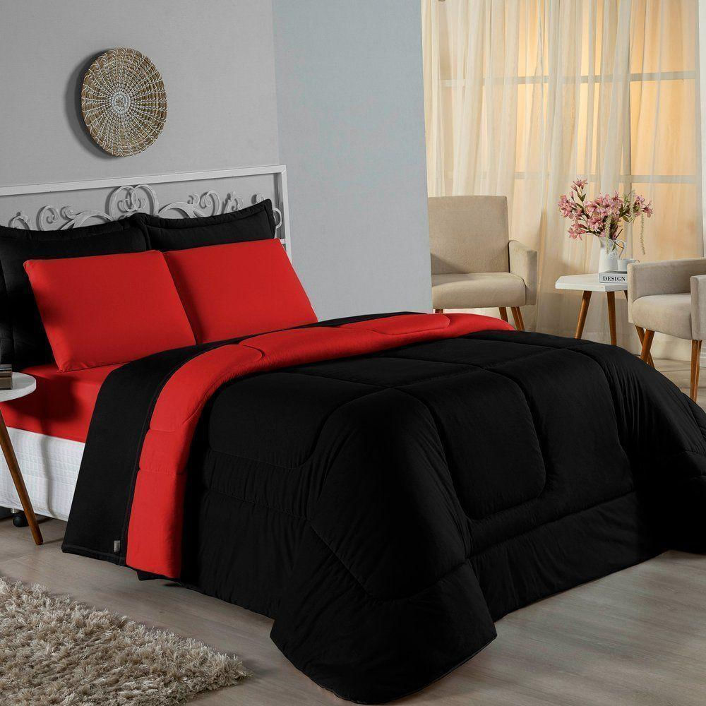 Edredom Queen Nobre 1 Peça Dupla Face 2,40m X 2,60m Malha 100% Algodão - Preto / Vermelho