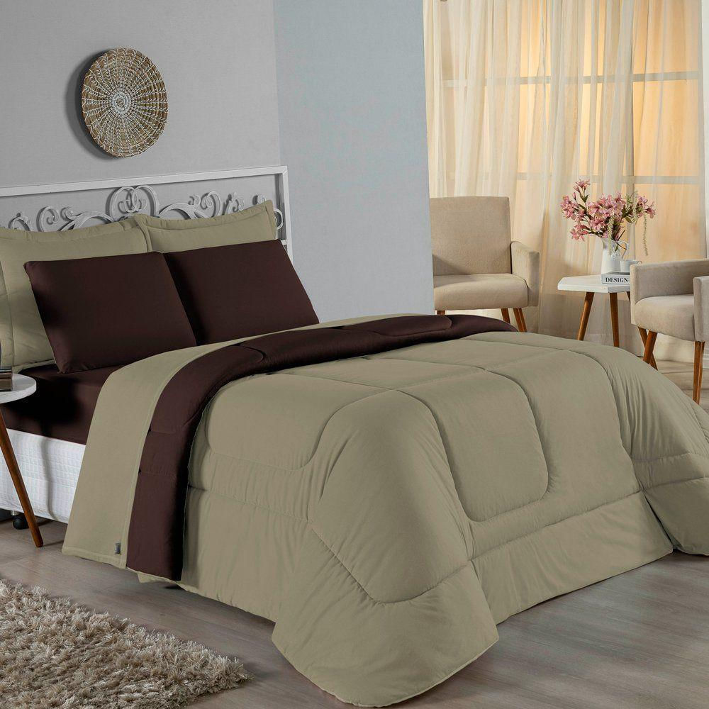 Edredom Solteiro Nobre 1 Peça Dupla Face 1,60m X 2,40m Malha 100% Algodão - Avelã / Marrom