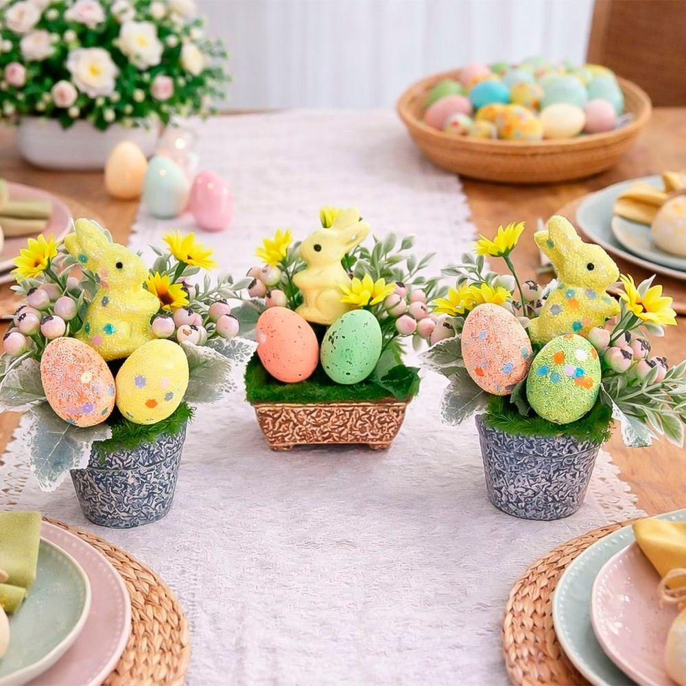 Enfeite Arranjo Páscoa Centro Mesa Aparador Coelho Kit 3pçs