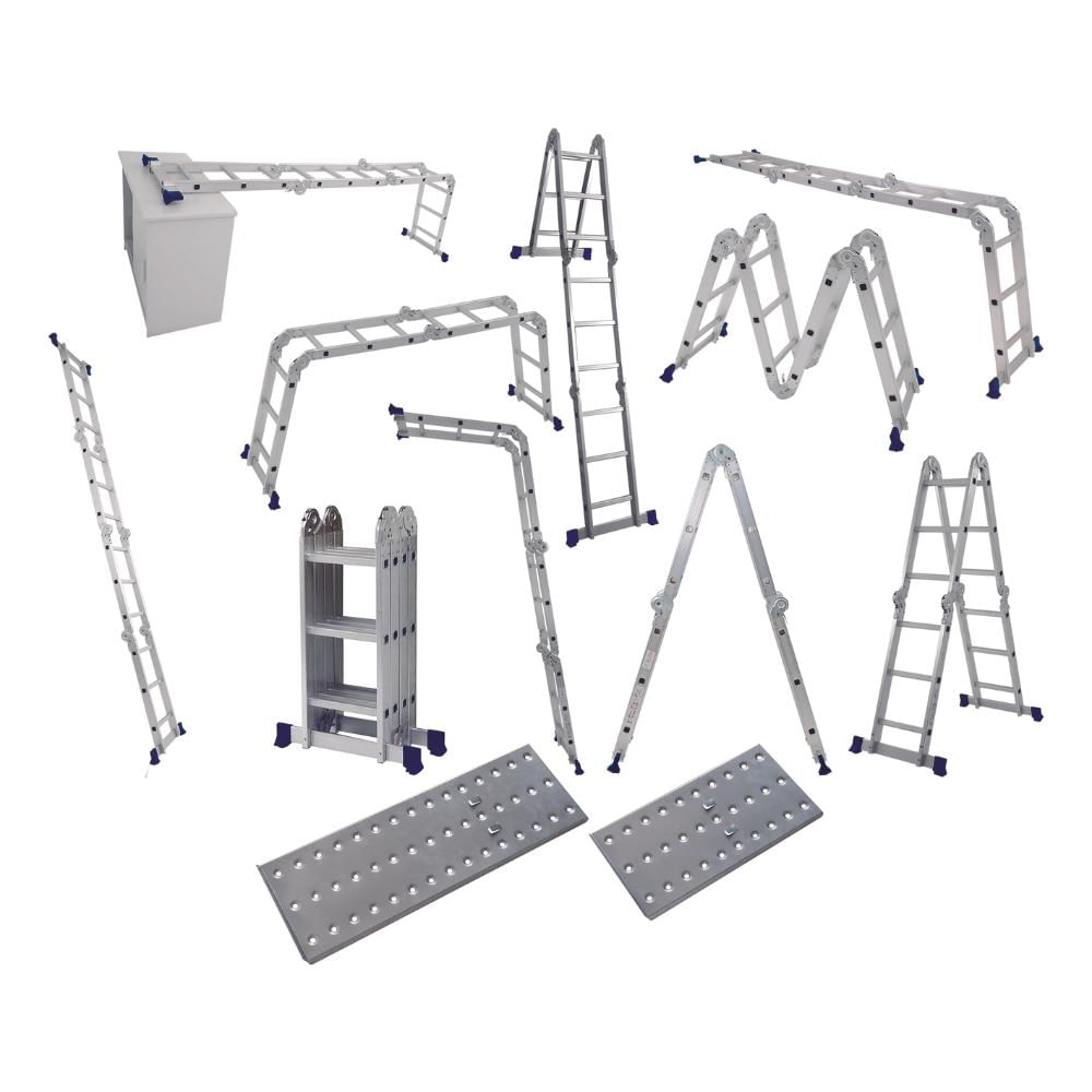 A Escada de Alumínio Multifuncional 4x3 com Plataforma vai te impressionar! São 8 formas de utilização em um só produto. Seu grande diferencial são suas chapas de aço que se encaixam servindo como plataforma, possibilitando utilizar a escada como andaime. Super resistente, suporta até 150 Kg. Possui catracas com excelente qualidade, travamento automático na extensão e ponteiras emborrachadas abauladas para melhor aderência no piso, garantindo segurança total durante seu uso. Estável e versátil, a Escada Multifuncional ainda é fácil de utilizar, em menos de um minuto você pode trocar a posição alcançando superfícies mais altas e lugares de difícil acesso com agilidade. Possui 4 partes de 3 degraus com ranhuras antiderrapantes (12 degraus), alcançando a altura de 3,37m quando totalmente estendida. Sua estrutura é de alumínio, compacta e leve para manuseio, com dobradiças em aço. Por ser totalmente dobrável, ao fechá-la seu volume diminui ocupando pouquíssimo espaço. É a ferramenta que você precisava para as tarefas do dia a dia e para uso profissional! Descrição do produto Marca: Mor Material: Alumínio Capacidade: 150 kg Produto para transporte Altura: 92 cm Largura: 28,5 cm Comprimento: 36 cm Peso: 14,9 kg