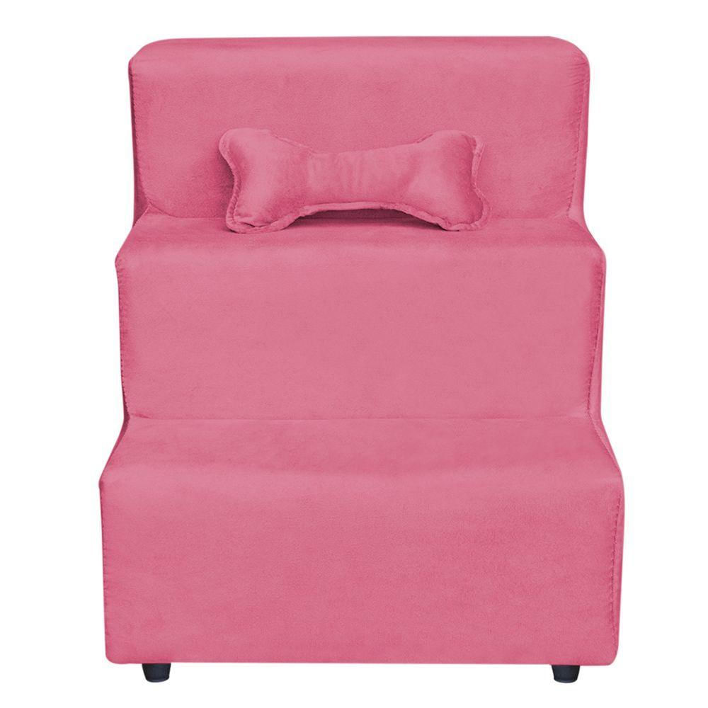 Escadinha Pet 3 Degraus Cachorro E Gato Suede Rosa