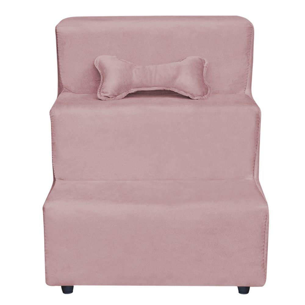 Escadinha Pet 3 Degraus Cachorro E Gato Veludo Rosê