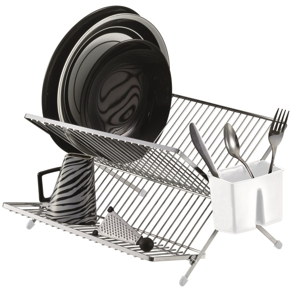 Escorredor de Louça em X Laminado Cromado 20 Pratos Porta Talher Plástico Organização Cozinha