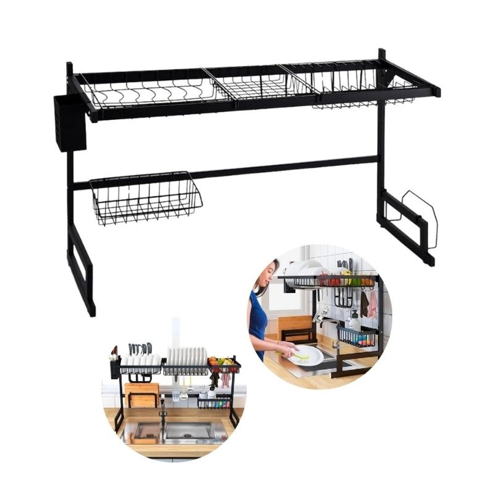 Escorredor de Louças Aço Inox Preto Médio Suspenso para Pia