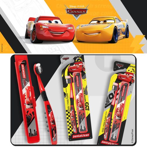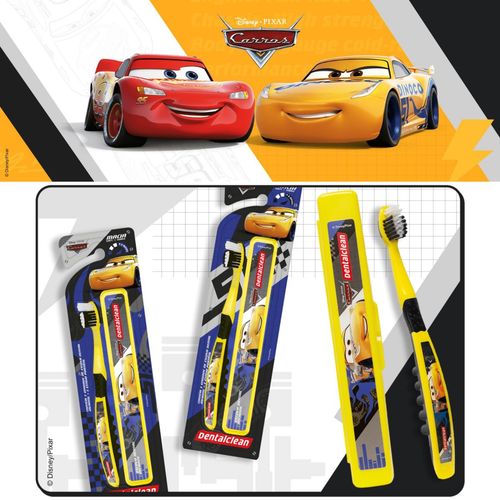 ESCOVA DE DENTE + ESTOJO CARROS ESCOLAR - 3 ANOS+ - DENTALCLEAN