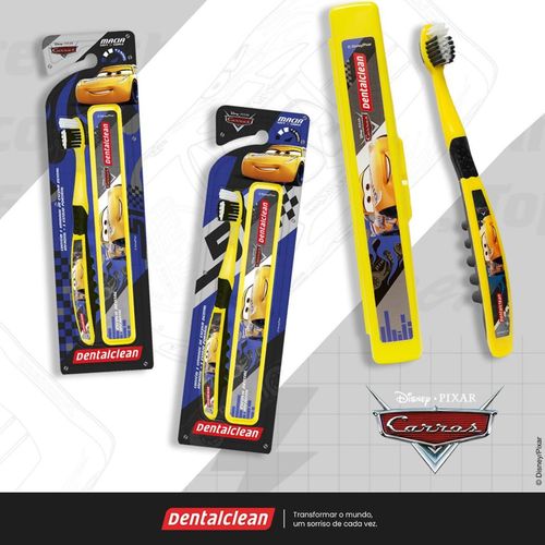ESCOVA DE DENTE + ESTOJO CARROS ESCOLAR 3 ANOS - DENTALCLEAN