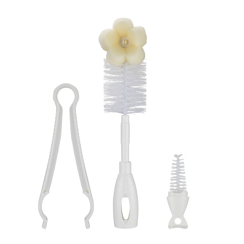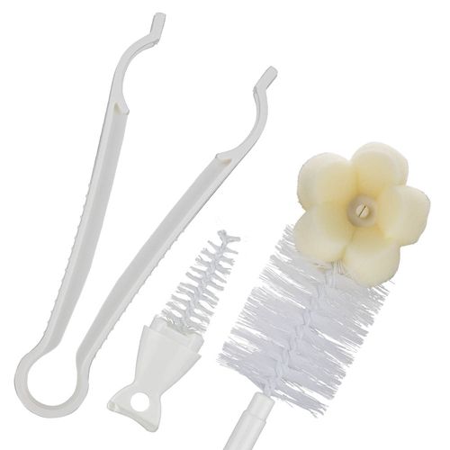 Escova de Limpeza para mamadeira com esponja na ponta, ideal para alcançar todos os locais para limpeza, alcançado até os bicos, vem também com uma escova de menor tamanho ideal para limpeza de mamadeiras menores, evitando que fique resíduo de alimentos evitando ploriferação de bactérias e uma pinça para coletar as mamadeiras e bicos após esterelização